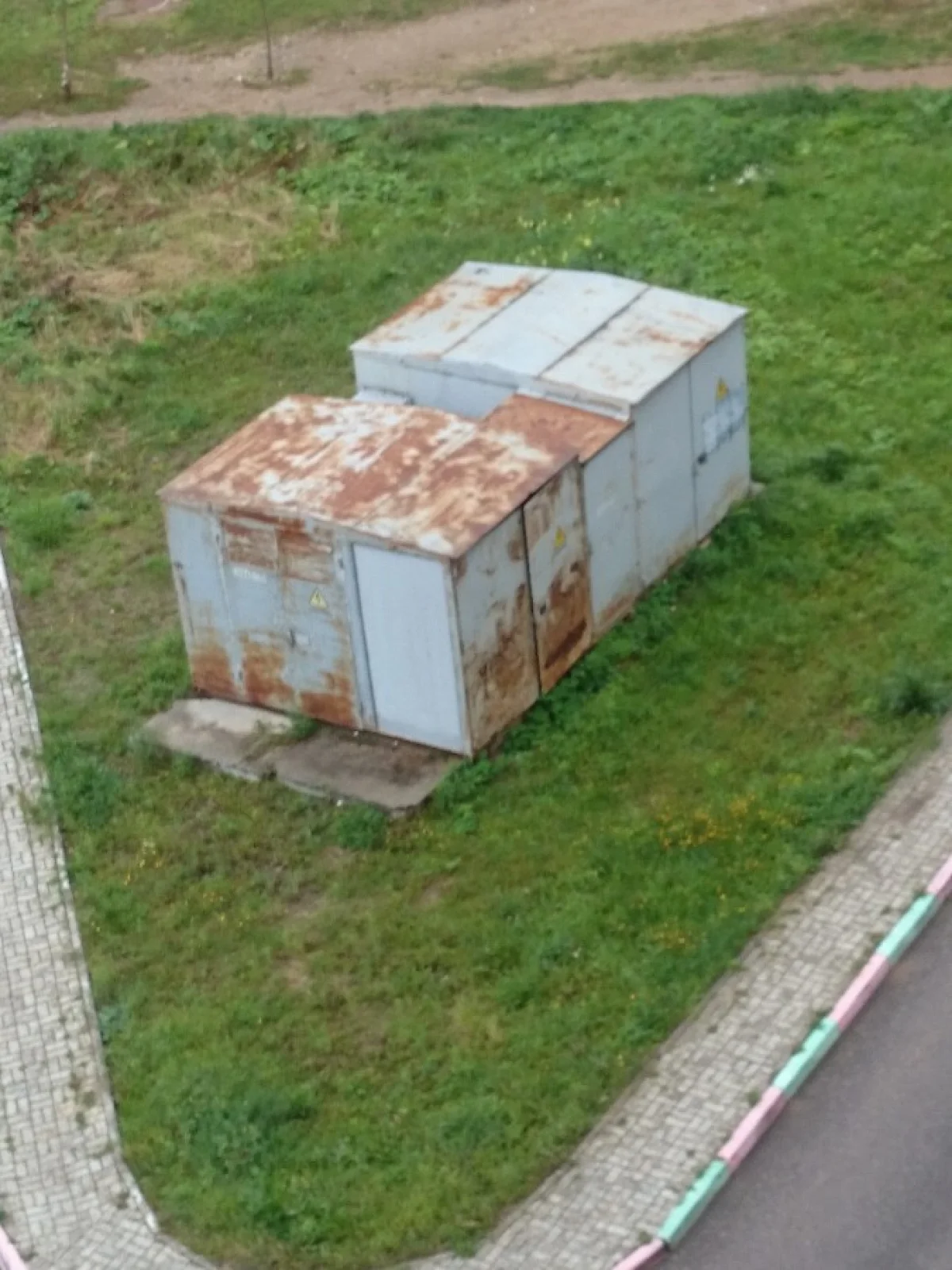 А вот вид сверху КТП по дворе дома № 106 по Грабцевскому шоссе. Судя по реакции властей техногенной катастрофы нам не избежать. Хочу напомнить, что пару лет тому назад взорвалась КТП у 12 школы. Тогда жертв удалось избежать. Как говорится: раз на раз не приходится. Мы надеемся что Бог нас милует.
