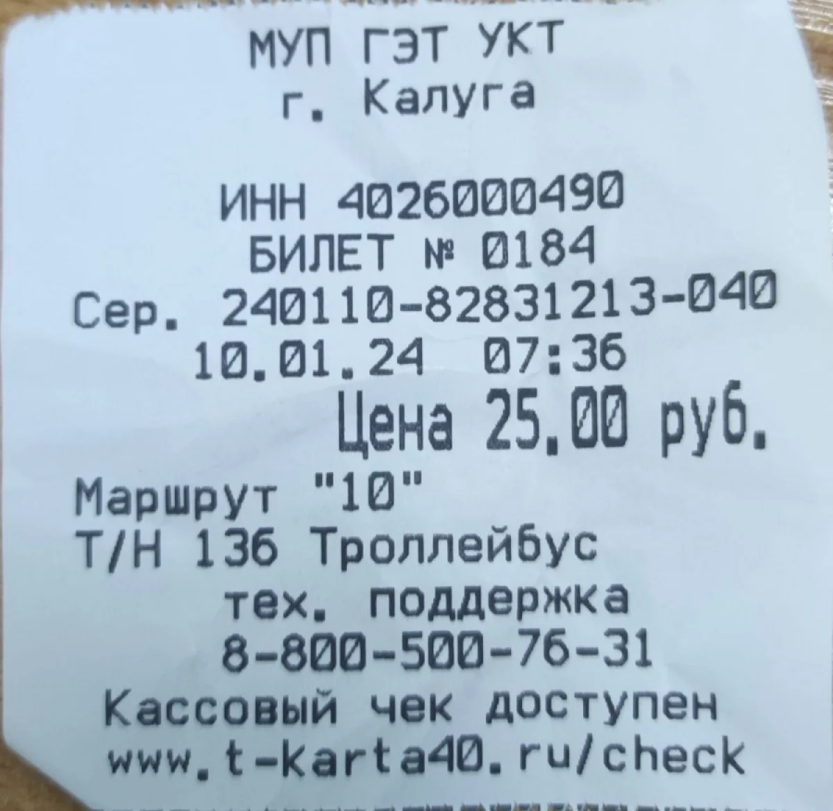 Сегодня утром ехал на троллейбусе №10 номер 136. Даю водителю-женщине 26 рублей (два десюнчика и три двухрублевки), она пересчитывает, кидает деньги на приборную панель, и молча дает билет. Я: «А сдача?» Она зло так: «Нету у меня рубля, ждите!»