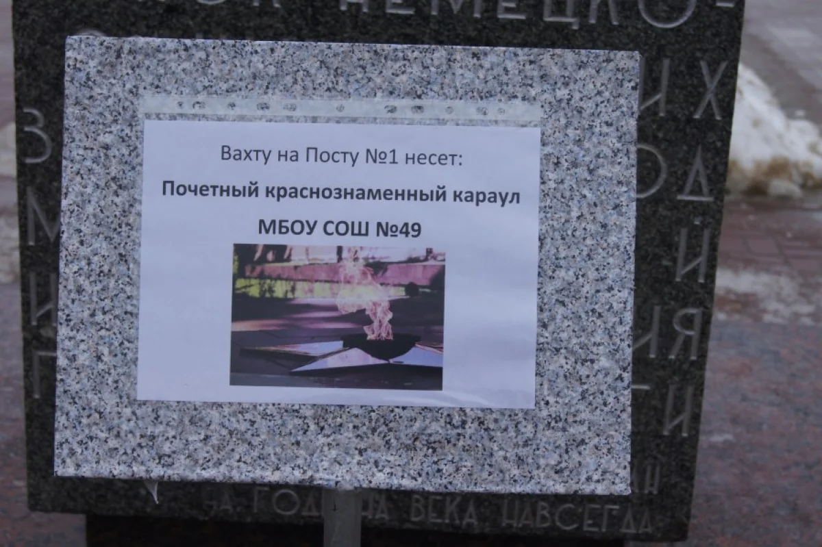 Службу на Посту №1 в настоящее время несут ребята из школы №49.