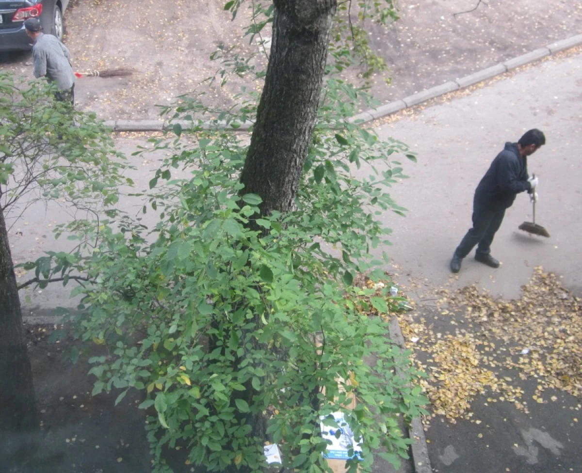 Выглянув утром в окно приятно была удивлена, приехала машинка, высадила людей с листовками и ... метлами. Мужички активно начали выметать весь мусор во дворе. Куда листовки наклеят еще посмотрим, ну хоть прибрались во дворе.