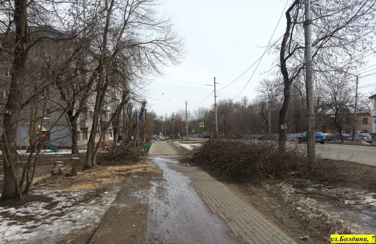 И пусть кое-кому не покажется странным, что я недавно возмущался уничтожением здоровых деревьев на ул.Суворова у Гимназии №24. Там было явное, на мой взгляд, головотяпство. Здесь же, на Болдина, ситуация требовала именно подобного решения. Кстати, про пеньки на Суворова так никто ничего и не прояснил...