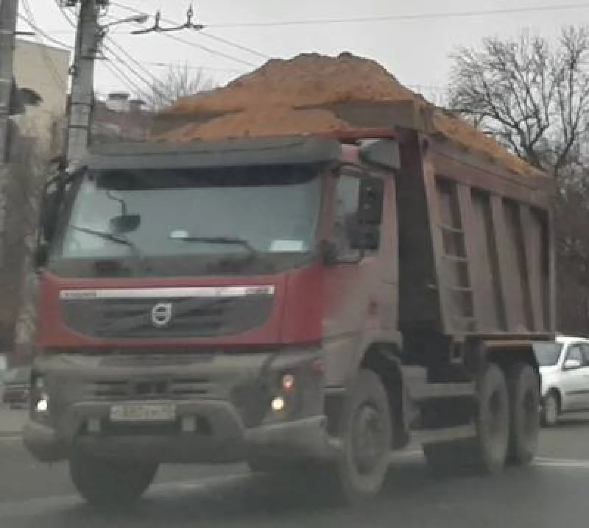 Уже не первый раз вижу таких перевозчиков песка. Это нормально? Сотрудники ГИБДД дежурившие как раз на этом месте интереса не проявили к данному персонажу. Или это грузовики кого надо? Потом жалуемся что всюду грязь.