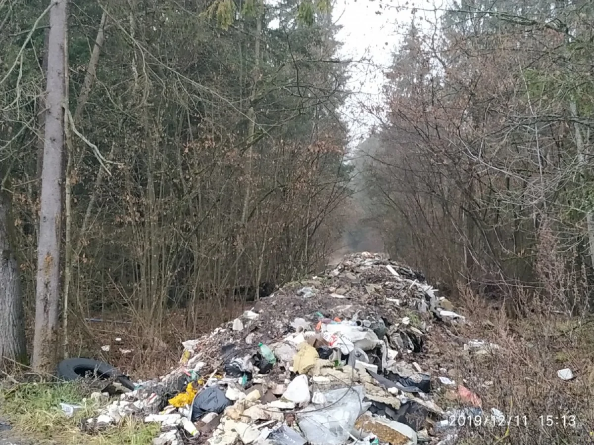Не доезжая несколько км. до поворота на Тихонову Пустынь по направлению из Москвы в лесу обнаружены огромные кучи строительного мусора.