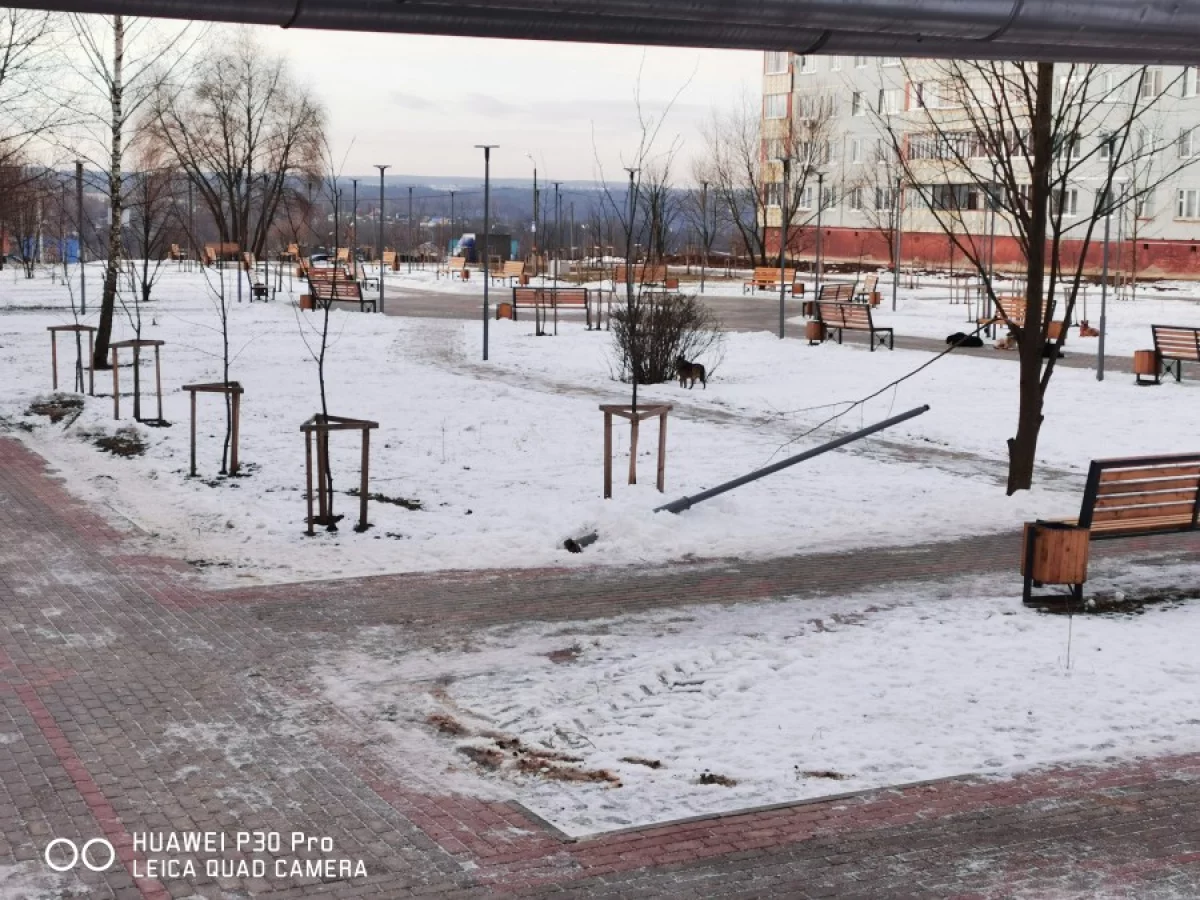 Ну вот и до нас добрались дебилы. Сломали светильник, повалили столб освещения. В свете последних событий не удивлюсь если и этот сквер окажется ничейным. Кстати, собаки бездомные тут тоже есть