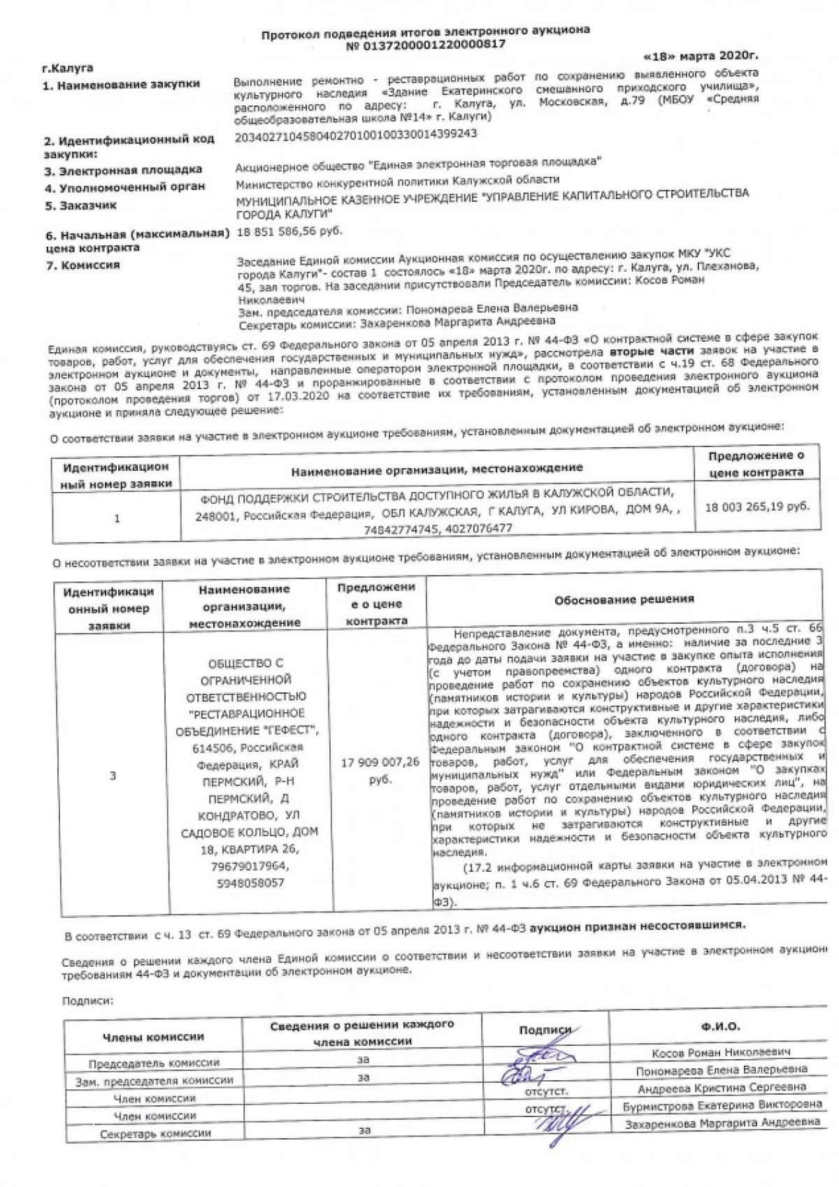 Извиняюсь, не разобрался сразу в протоколе. Есть победитель однако - Фонд поддержки строительства. УРА! Быть ремонту!