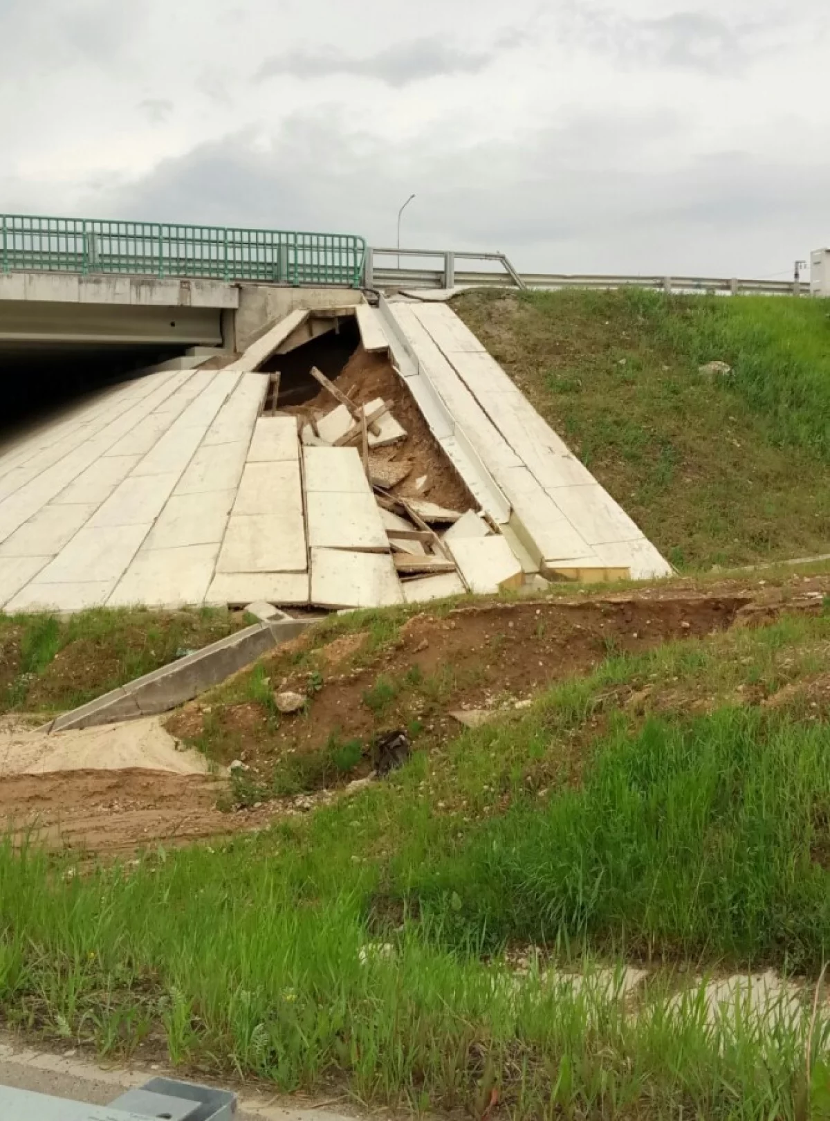 Совсем недавно отгремели фанфары, по поводу окончания строительства моста через угру на трассе М3 в районе п. Куровской и вот уже начинает разрушаться данное сооружение. На фото видно как размывается насыпь под путепроводом развязки на д. Обухово. Награды, премии получены, за эксплуатацию дороги деньги получают( кстати это платный участок) . А ремонт где?