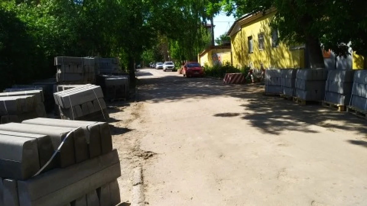 №4, пер.Воскресенский. Драгоценным бордюрным камнем перекрыли оба тротуара пока идёт ремонт ул.Луначарского. И что, некому поправить гостей города-строителей, что нельзя так делать, тем более - не на час-другой?!