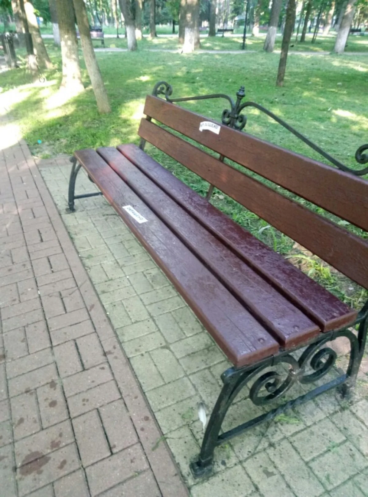 парк был закрыт для посещения, кажется вот когда нужно красить, благоустраивать, косить траву, но нет, всё это начали делать в первые дни после открытия именно тогда, когда в парк ринулись люди. И что, лавки покрасили, наклеели на них бумажки с надписью окрашено, которые потом так и останутся на краске, пожилые люди садясь на лавку подстилают газеты, которые также прилипают .