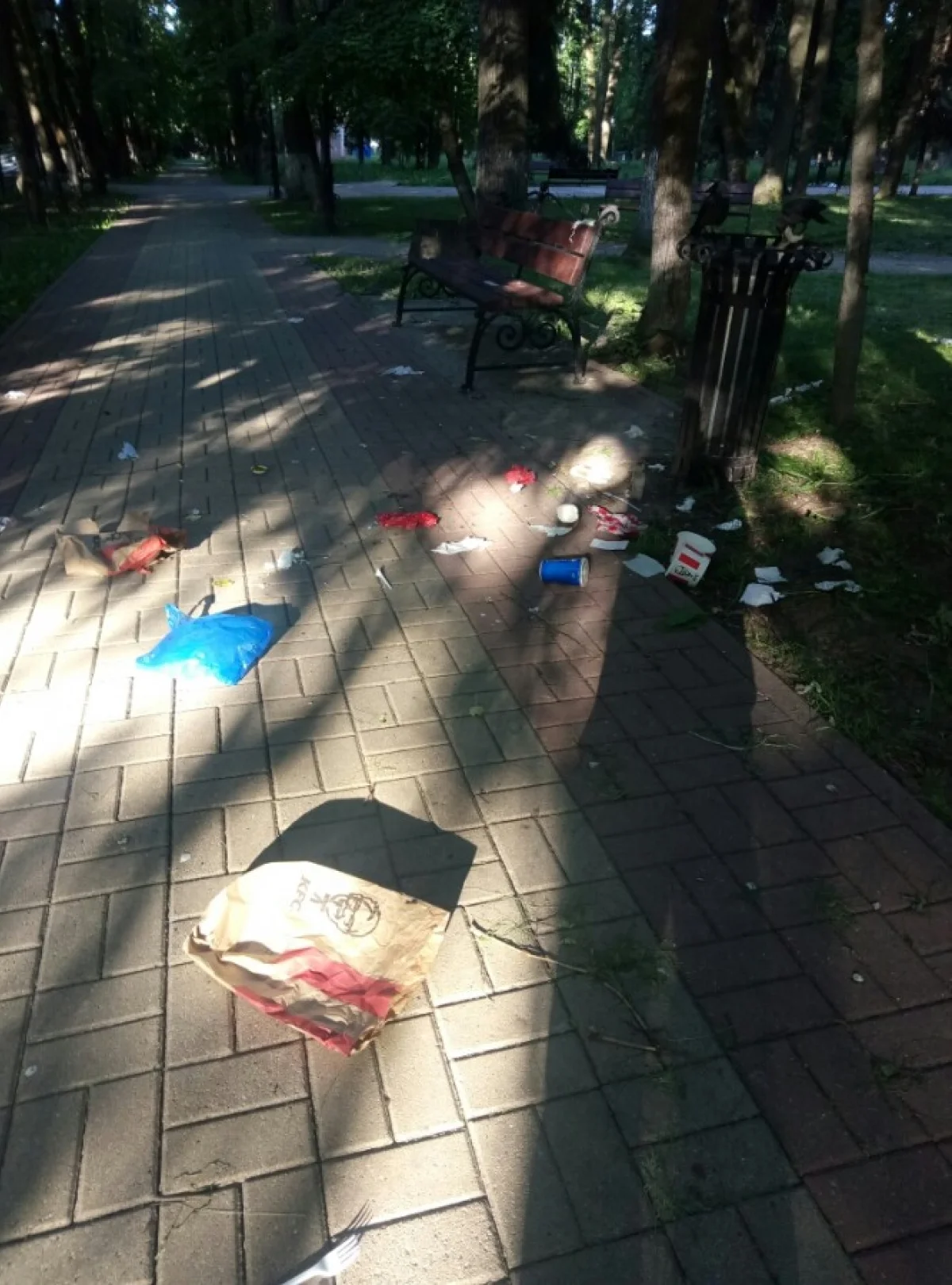 Урны стоят переполненные, вороны всё это разбрасывают, на фото видно. Повторюсь, три месяца парк был пустой, делай никому не мешая.