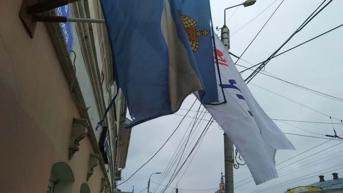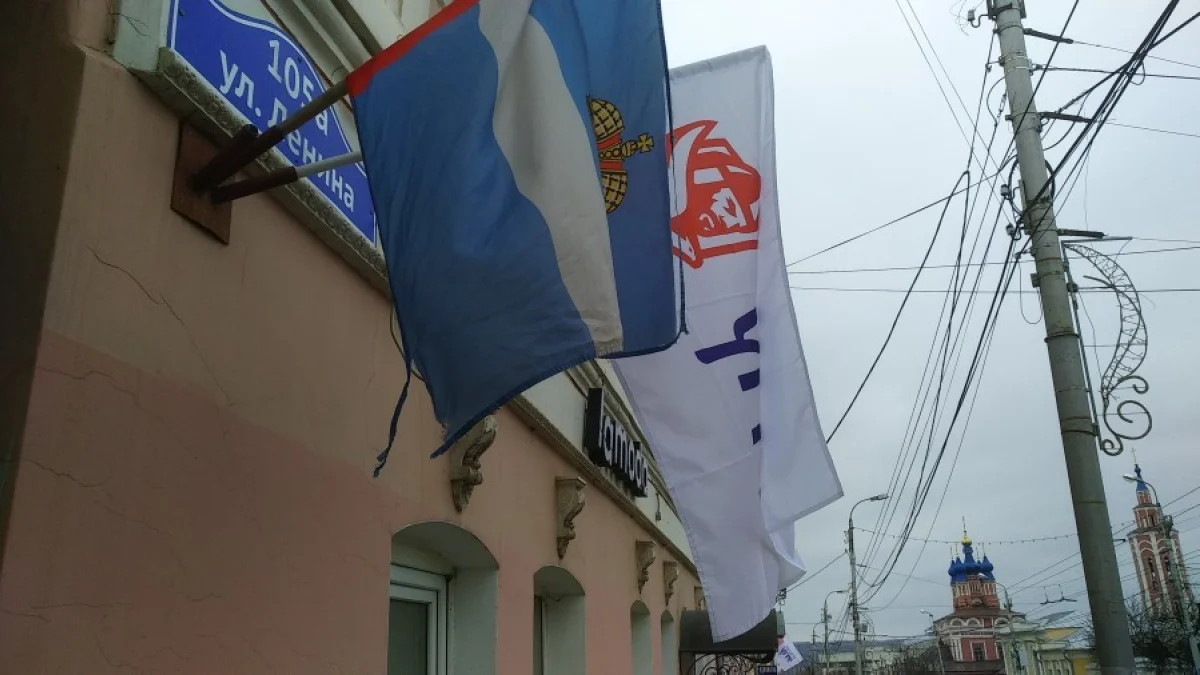 2.По ул.Ленина развесили флаги в честь годовщины стояния на Угре. Скажите, а стоило ли вывешивать такой экземпляр, что - на снимке? Может, его надо было передать одному красавчику, который в своё время забирал флаги "постирать". Постирал бы, а заодно - и подшил бы!