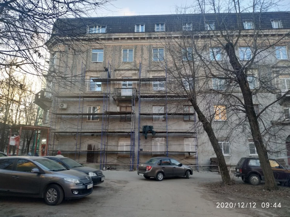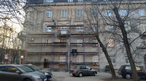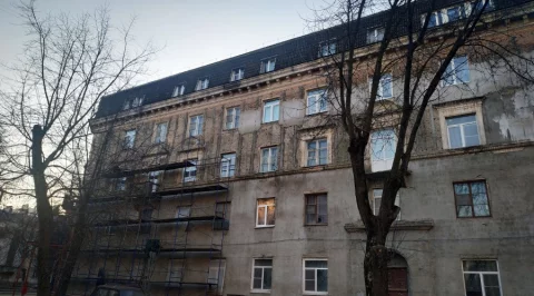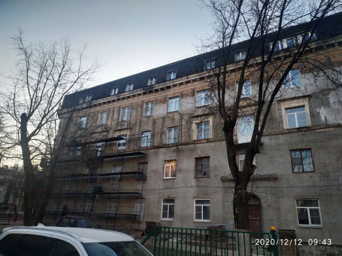 Чичерина 18. Строительные леса простояли вокруг фасада дома c весны. За это время с наружной части дома только отбили старую штукатурку и всё. И вот 12.12.20 г. леса начали разбирать. Ремонт закончился так и не начавшись.