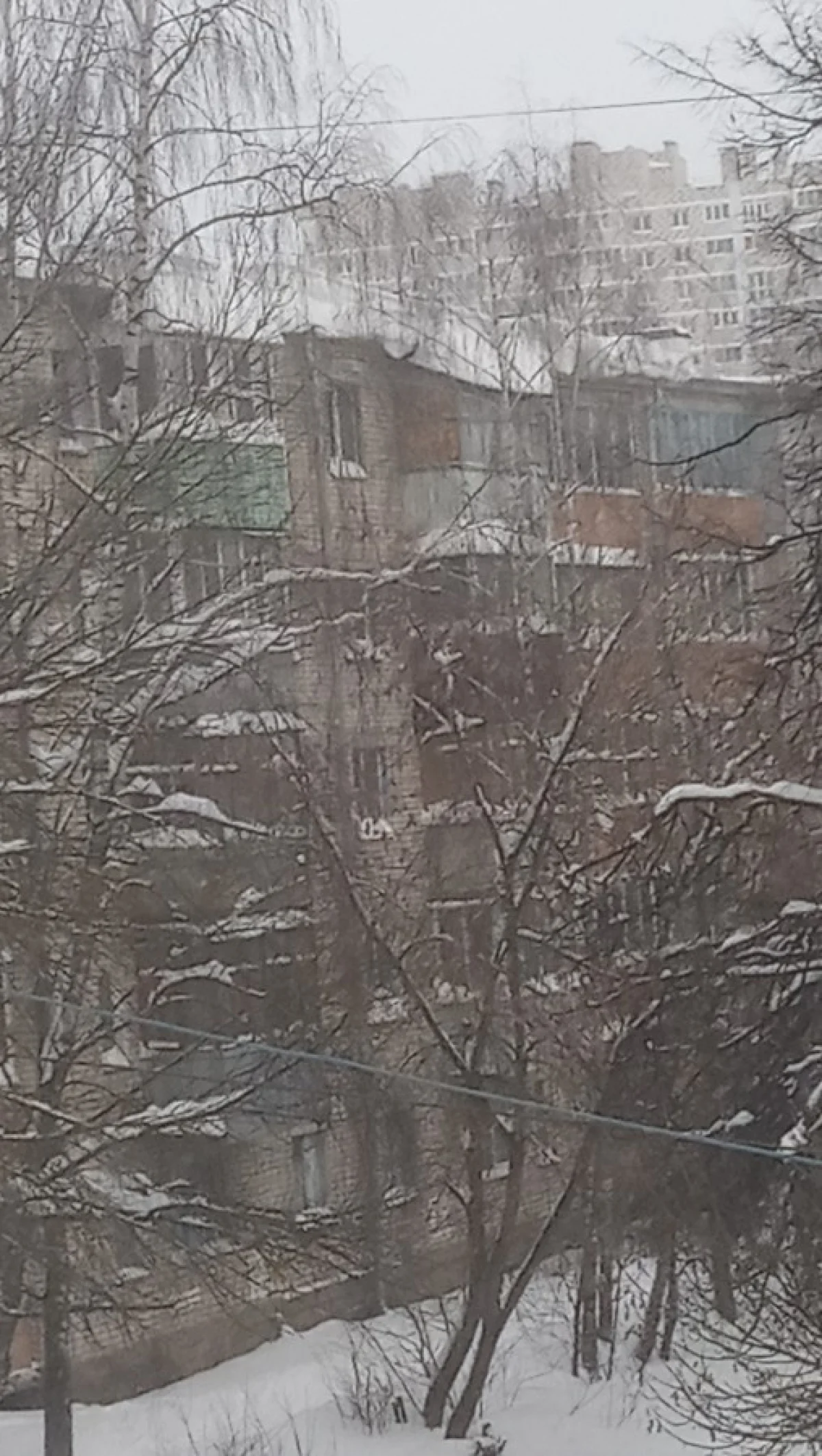 Снега полно везде. Дороги замело. Чистят, чистят, но никак не почистят. А на крыши кто-то смотрит? Там тоже метровые слои снега. Или ждут, пока убьёт кого-то?