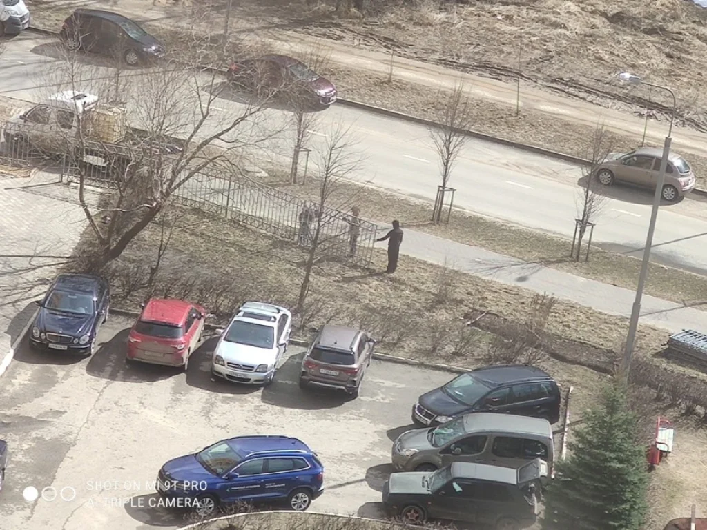 обиженный владелец стоянки решил отомстить за поруганную честь... три неустановленных перца, вооруженные болгарками, неистово кромсают забор... жители в ужасе молят о помощи...