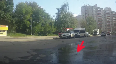 Вот и сейчас любители гейзеров могут насладиться извержением на разворотном кольце троллейбусов маршрутов номер 2 и 17. Уже не первый день вода стекает бурным потоком вниз по улице Азаровской в сторону улицы Московской, затем не доходя до улицы Параллельной поток уходит вправо с дороги и в конечном итоге стекает в речку Терепец. Тем не менее, вода колёсами разносится до выезда на Московскую. Другая часть потока стекает вниз по Бульвару Энтузиастов.