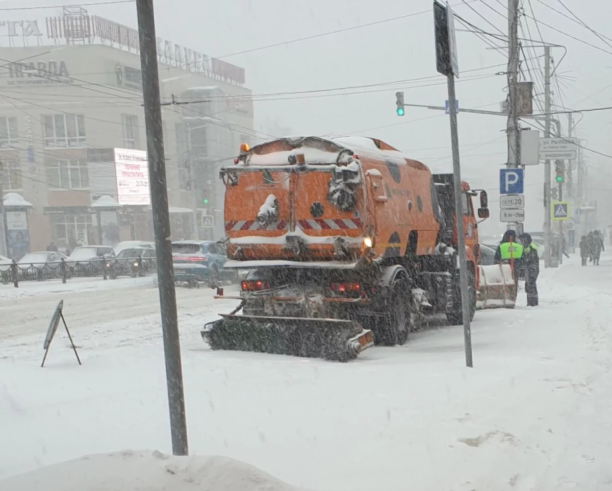 Короткий фоторепортаж, о том, как в метель, "город убирается"(с) городскими коммунальными службами, ответственными за уборку снега, в частности - показана работа снегоуборочной техники в центре города. Да, вы всё правильно поняли - работа снегоуборочной техники в самый разгар непогоды - производится в статичном положении. Время съемки - 12:20- 12:30.