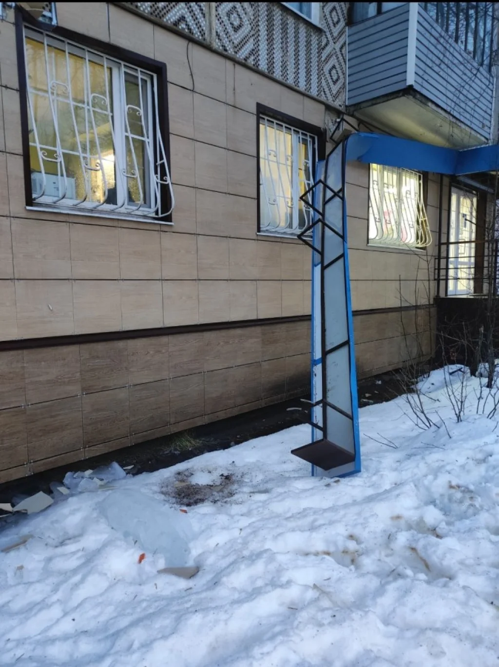 На ул. Московской в районе пушек снесло вывеску пункта выдачи