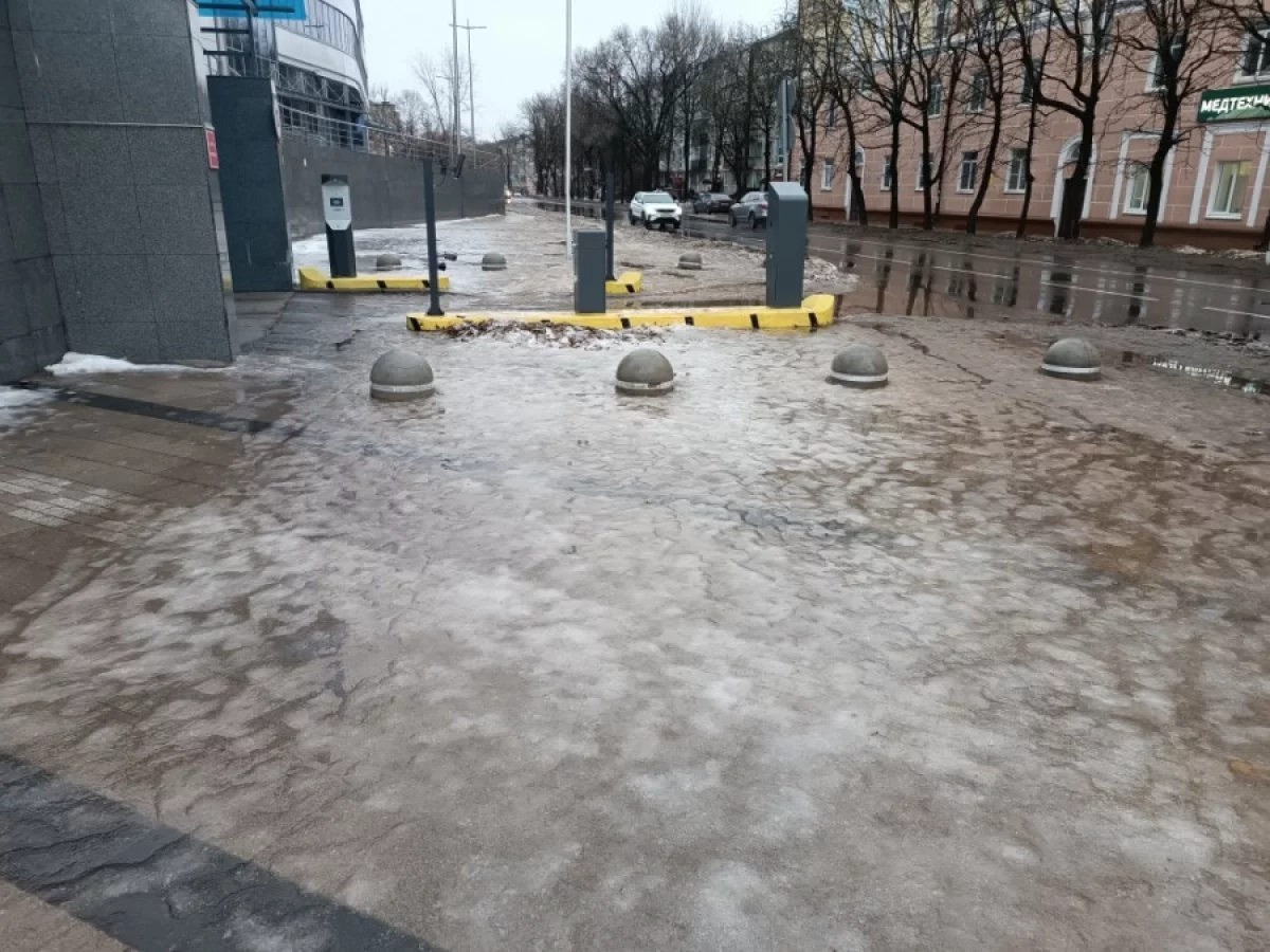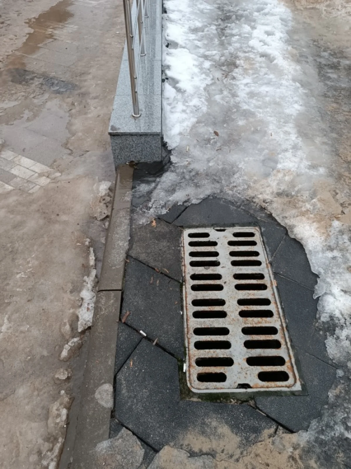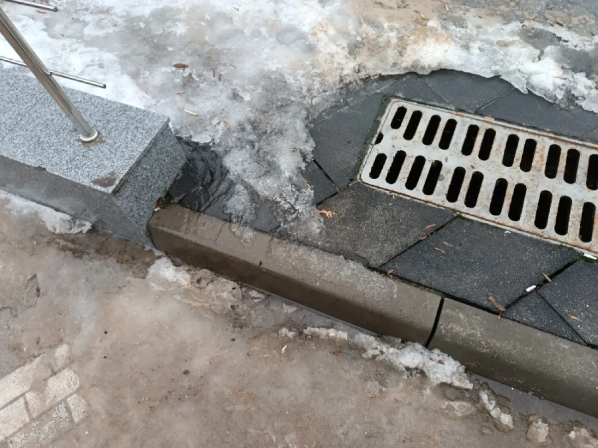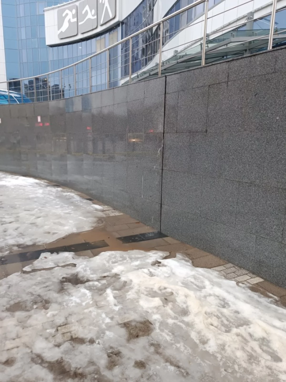 После оттепели, начавшейся 10.12.2022 в стенах Дворца спорта стали возникать водопады и соответственно, ручейки, которые упорно не ходят направляться к предназначенным для них решетками ливневой канализации, образуя необъятные водоемы на тротуаре и проезжей части.