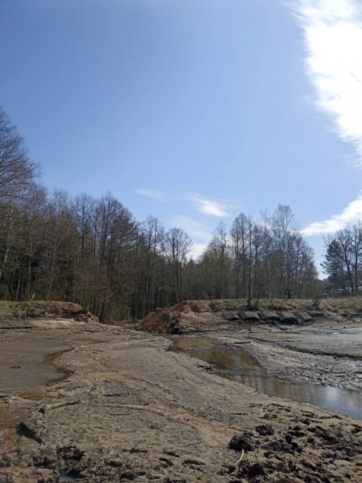 Пруд на станции Муратовка, где купались и рыбачили местные жители и окрестные дачники (и даже была небольшая база отдыха), кажется, не пережил весенний паводок. Размыло плотину (скорее всего), ушла вся вода из пруда, остался только еле-еле текущий ручей.