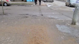 В Калуге на Литейной течёт вода из дырки в асфальте