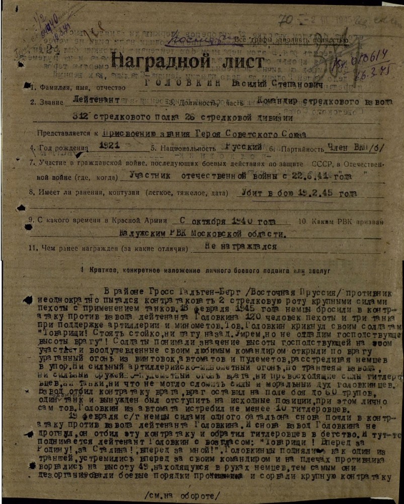 ГОЛОВКИН Василий Степанович 1921 г.р.