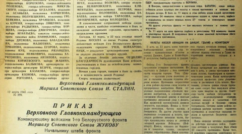 В течение 13 марта юго-восточнее Данцига (Гданьск, Польша) наши войска, наступая на север вдоль восточного берега Вислы, заняли населённые пункты Раймерсвальде, Нойтайхервальде, Фирценхубен, Бреснерфельд, Прангенау, Нойкирх, Пальшау.