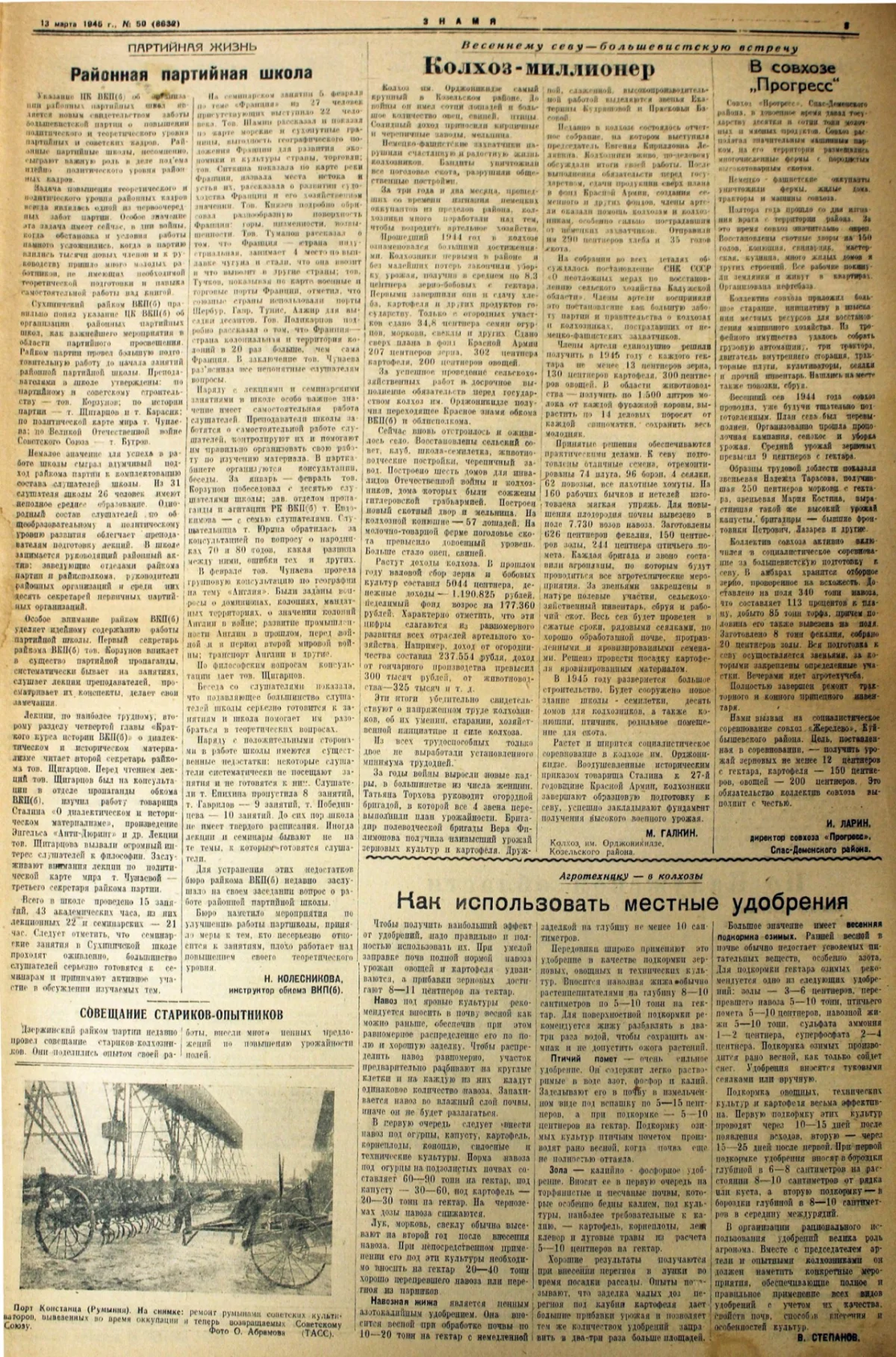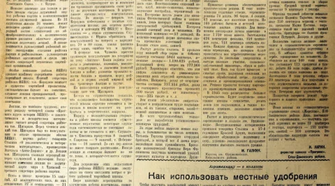 В Дзержинском районе проходят встречи стариков-колхозников с молодежью, на которых первые делятся опытом со вторыми. На страницах газеты публикуются советы по удобрению земель, рассказывается об опыте работы передовых колхозов области.