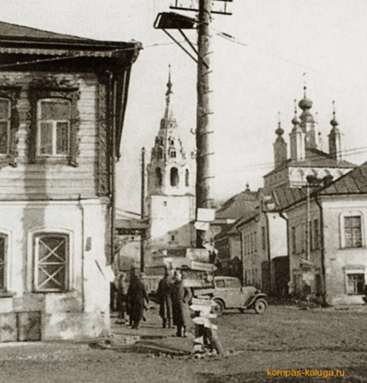 На фото октябрь 1941 года, пересечение нынешних улиц Баумана и Пушкина. Видна церковь Георгия «за верхом».