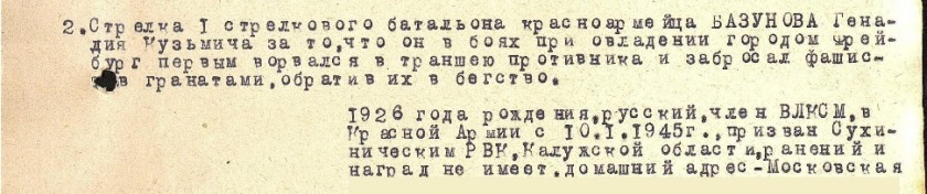 БАЗУНОВ Геннадий Кузьмич 1926г.р.