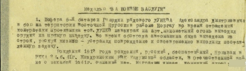 ЛУНЕВ Александр Дмитриевич 1912г.р.