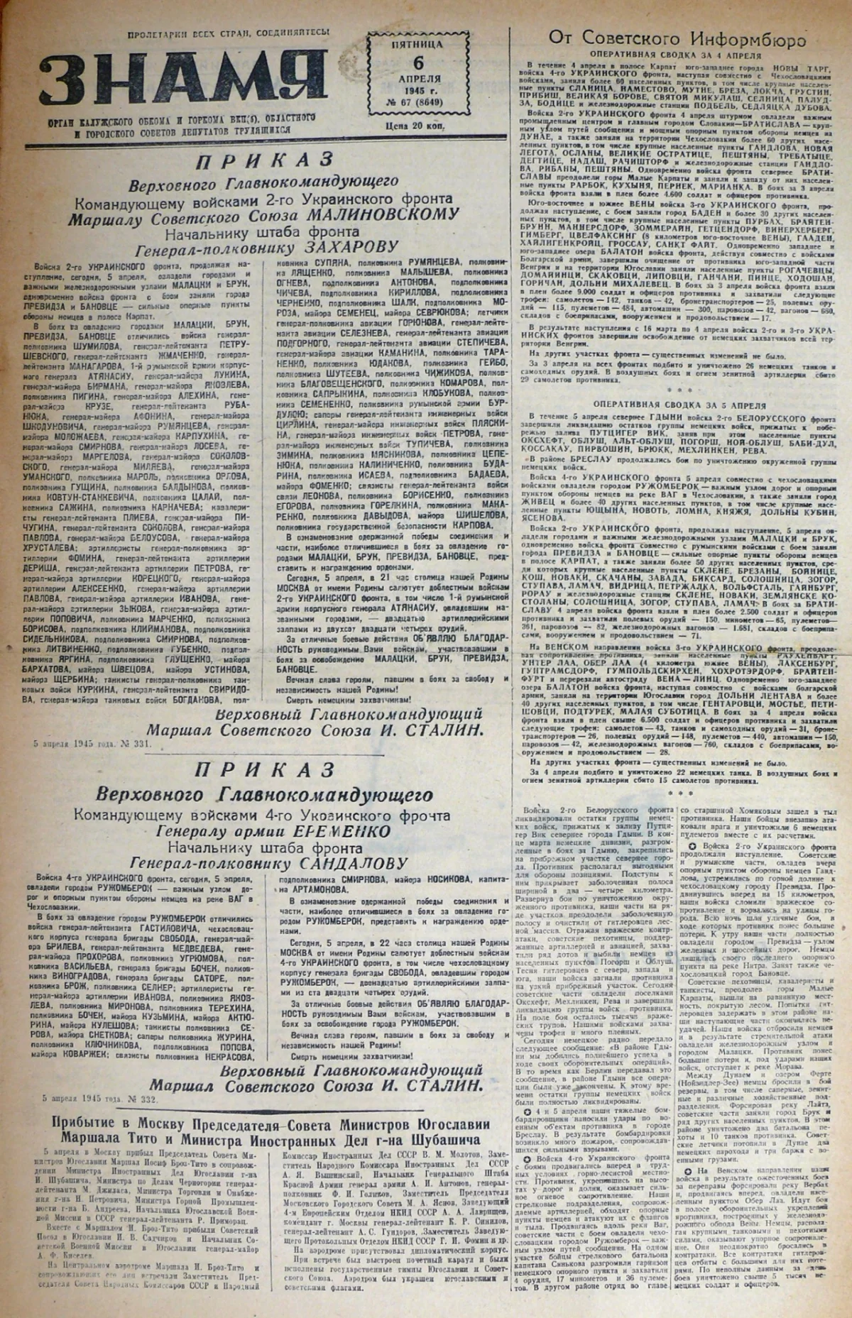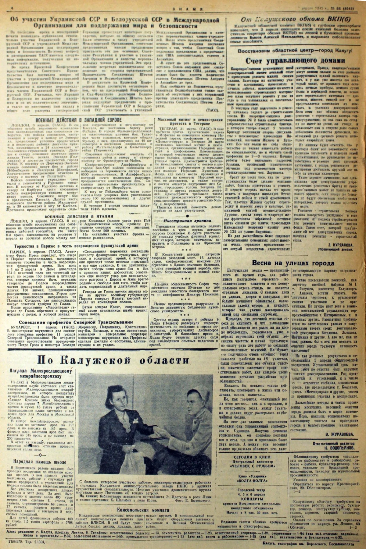 4,5,6 апреля: Наши вошли в Братиславу, Венгрия освобождена полностью, а в Калуге театралы-любители поставили пьесу Потемкина «С тёплым ветром»