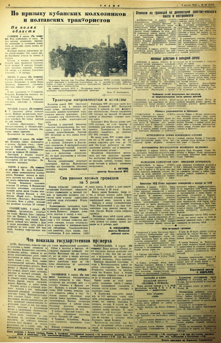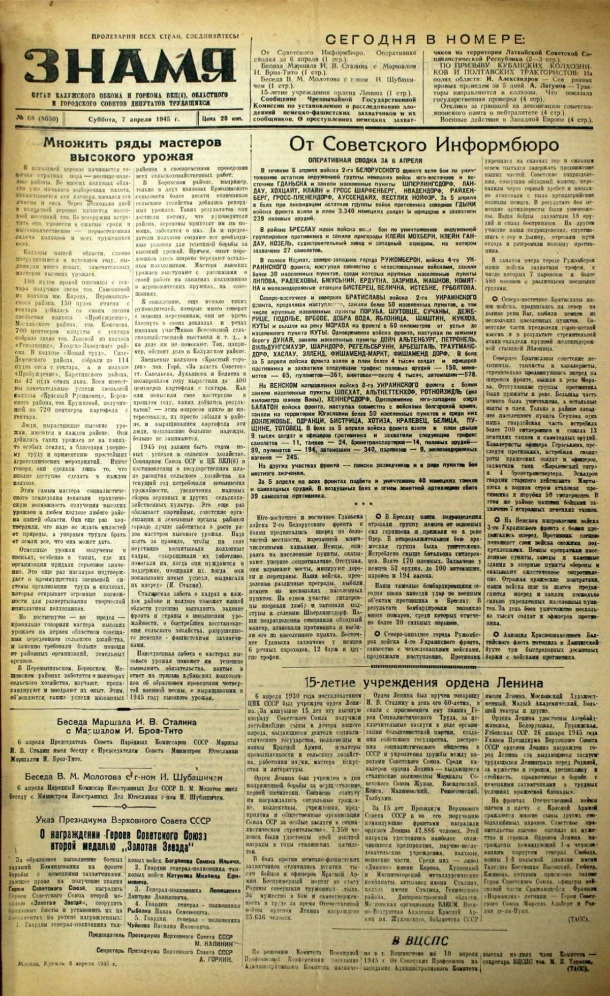 7 апреля: Наши войска вошли в южные кварталы Вены, а в Калуге разбирались с проблемами скульптурной фабрики