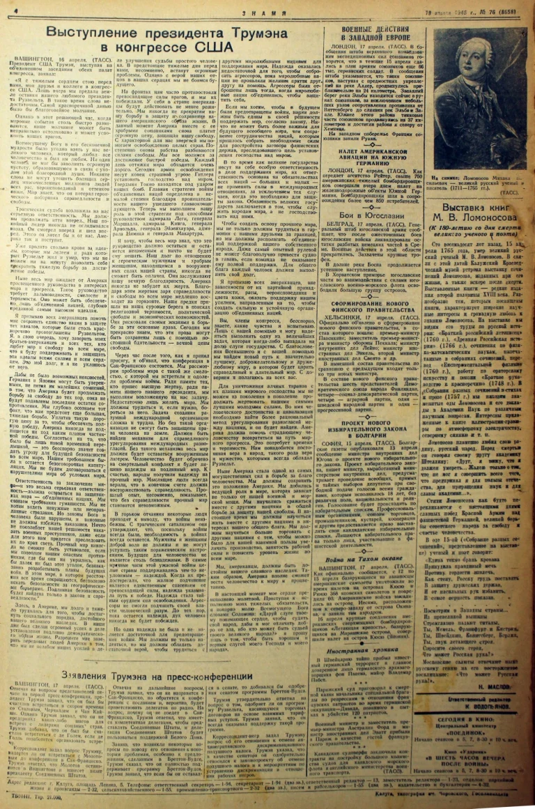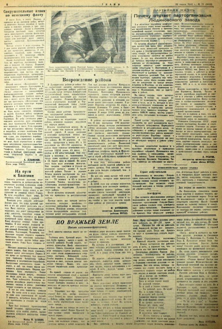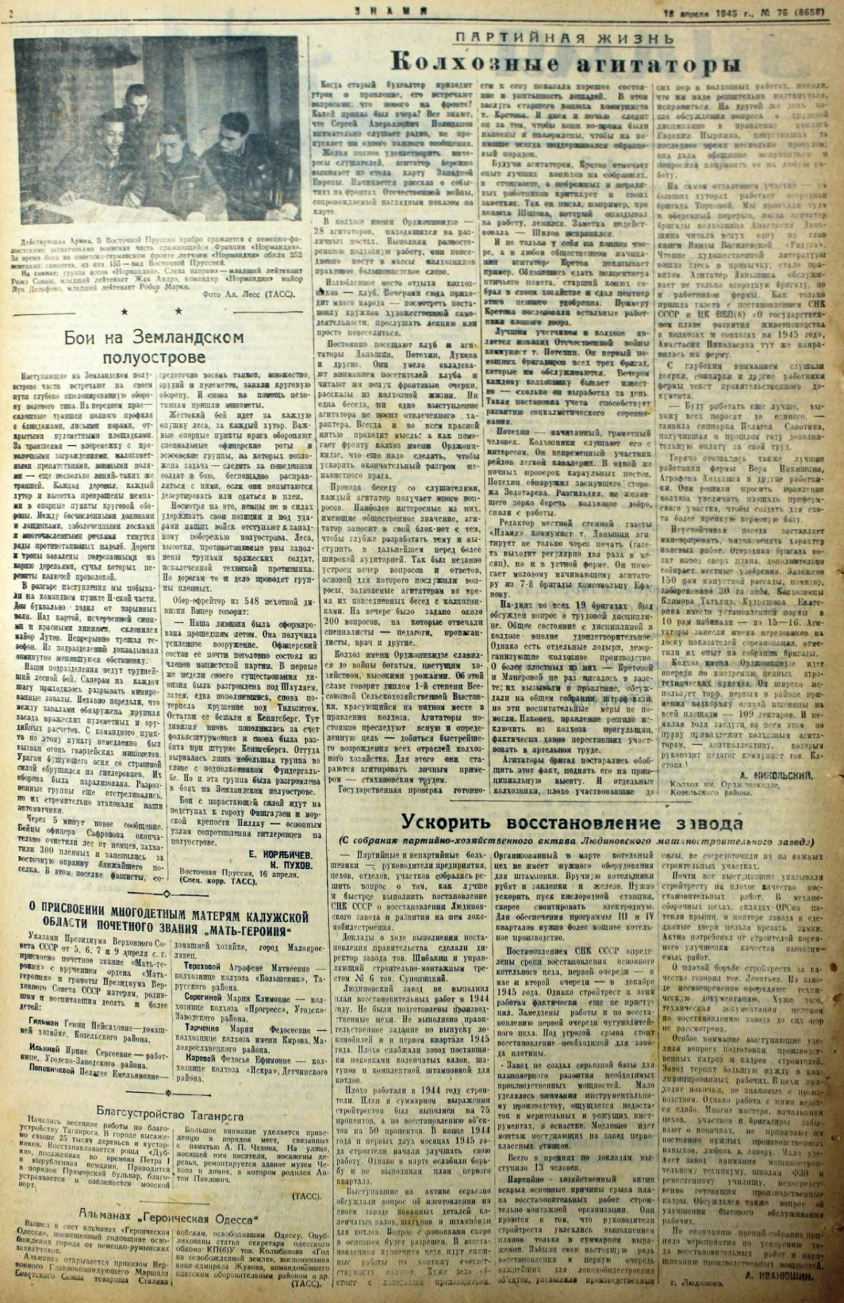 18,19,20 апреля: Наши войска добивали противника в районе порта Пиллау, а в Калуге многодетным матерям присвоили звание «Мать-героиня»