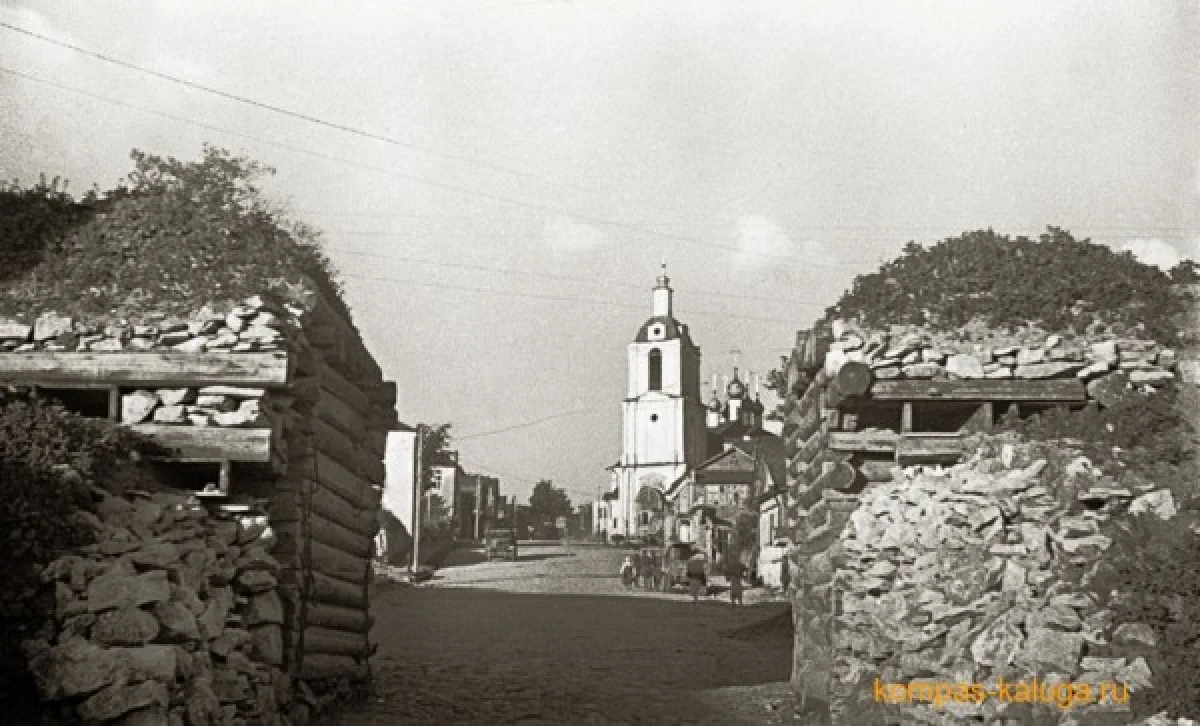 На фото июнь 1942 года — улица Смоленская. Видны оборонительные ДЗОТы. Справа храм Спаса Преображения «за верхом». Менее года назад по этой улице немцы входили в город.