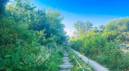 Старый, заброшенный железнодорожный путь в центре Калуги продолжает зарастать сорняками и мусором.