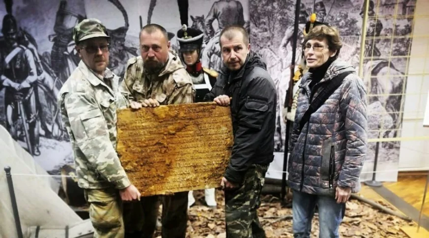 Поисковикам удалось прочитать часть надписи на ней.