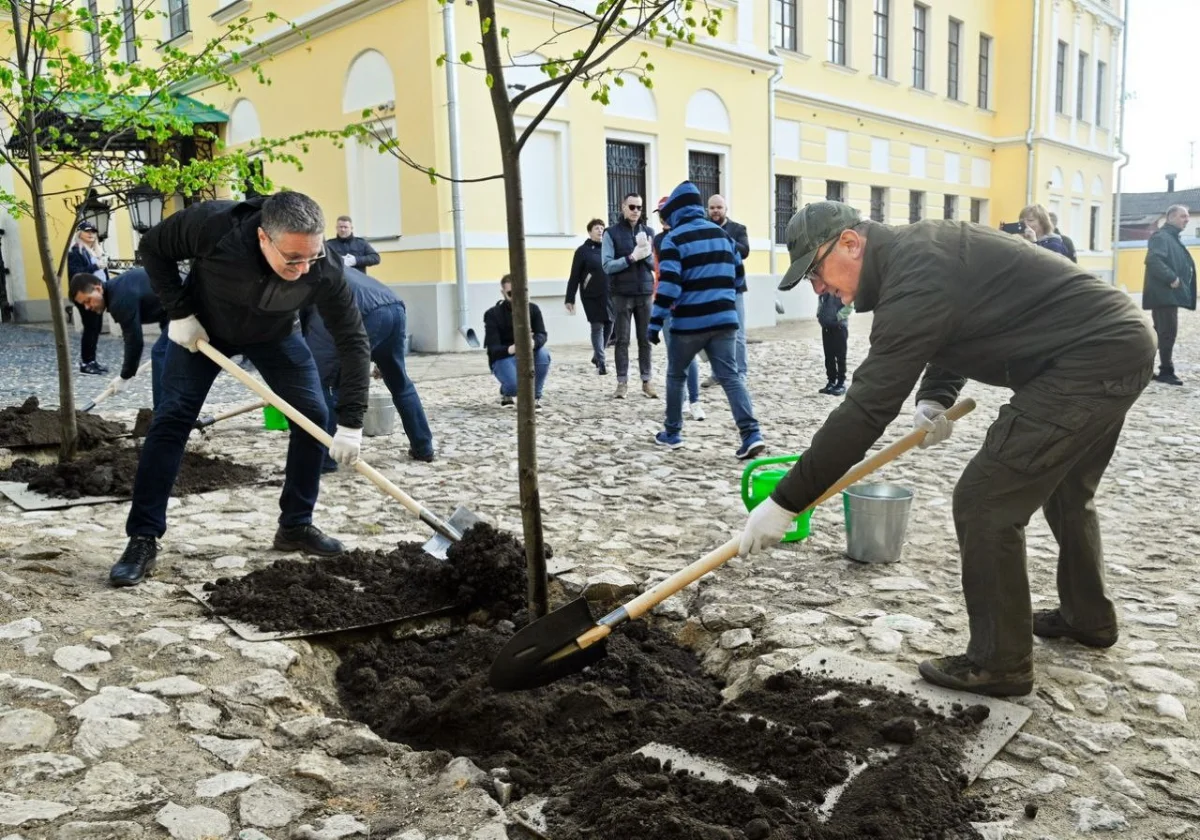 Утром в субботу, 29 апреля, во дворе краеведческого музея в Калуге высадили девять новых лип. Они появились на месте больных ясеней, которые спилили в декабре.