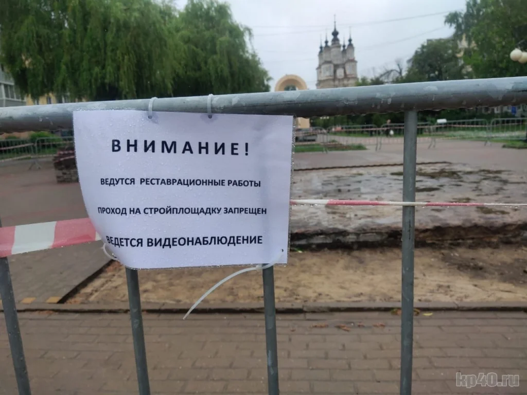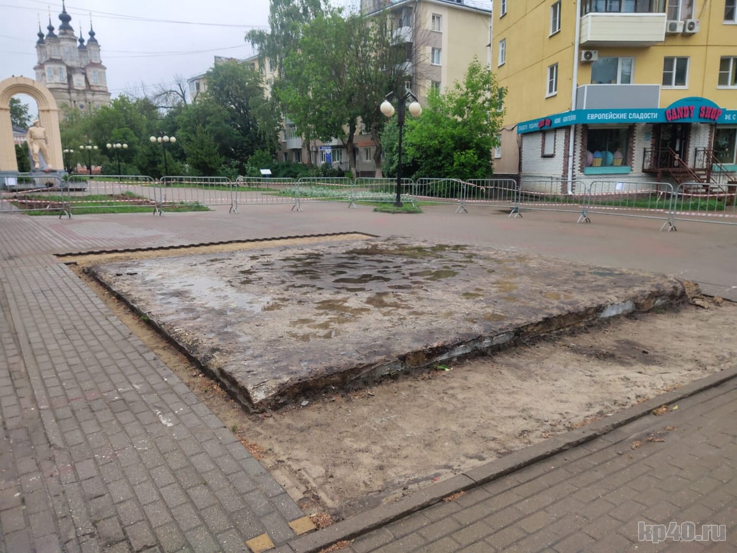 В центре Калуги вырубили кусты и убрали клумбу для установки БМП-2
