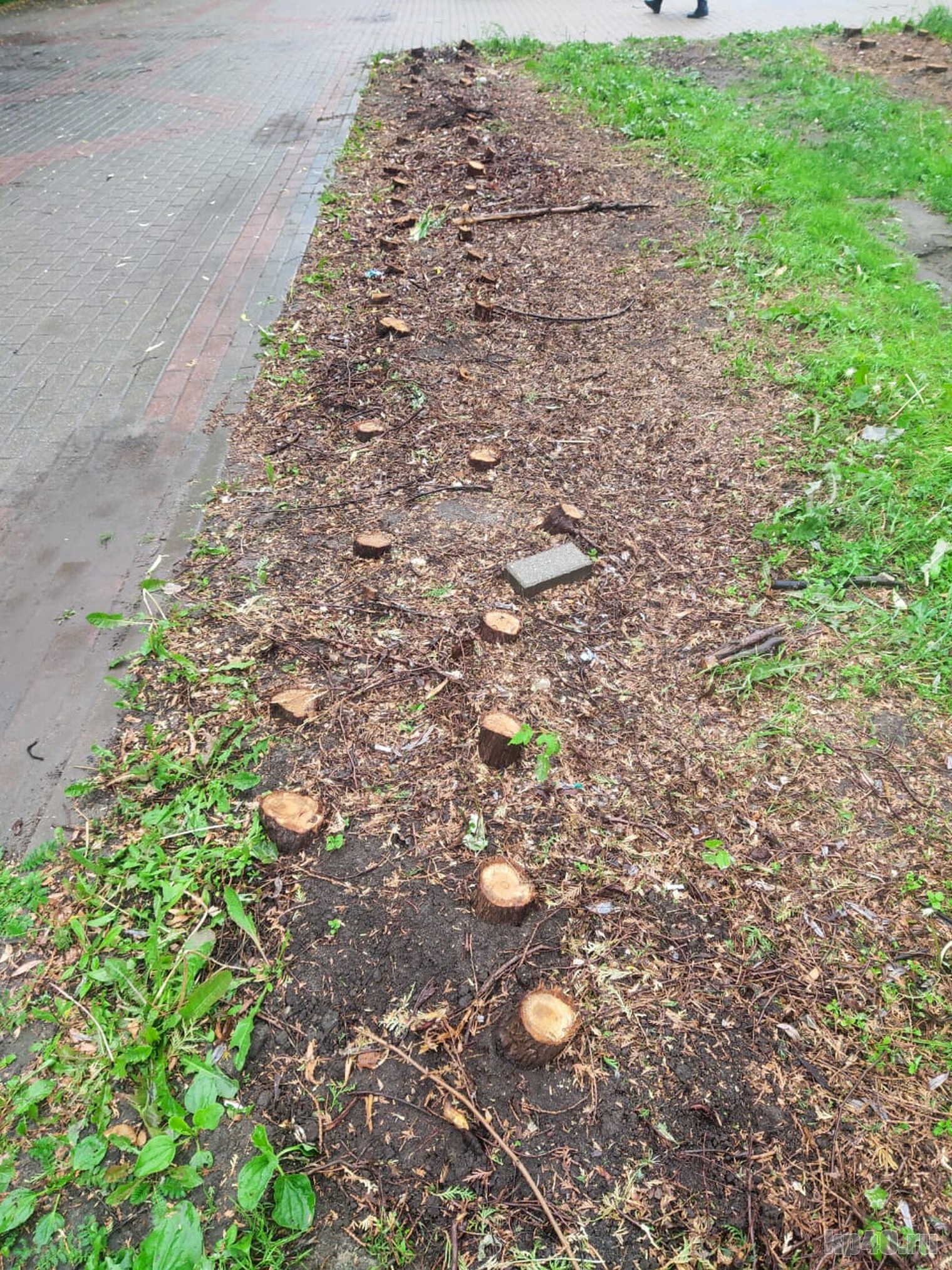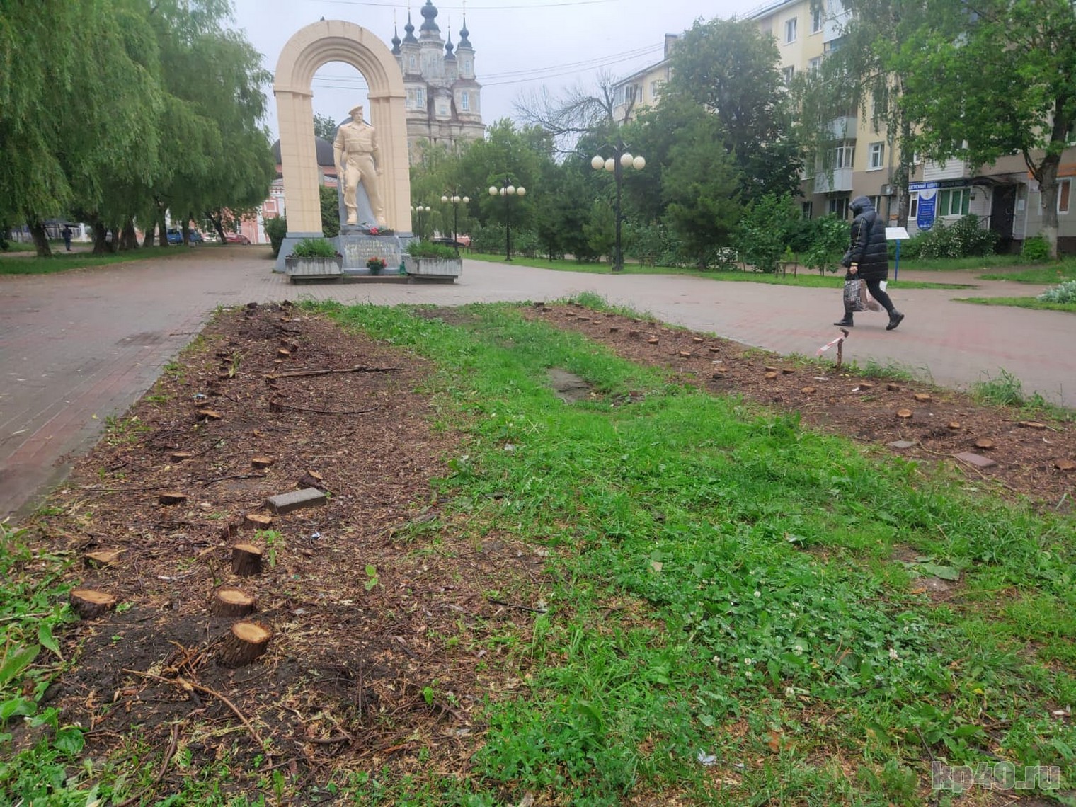 Там вырезали кусты у памятника воинам-интернационалистам. Также исчезла клумба, которая находилась ближе к площади Победы.