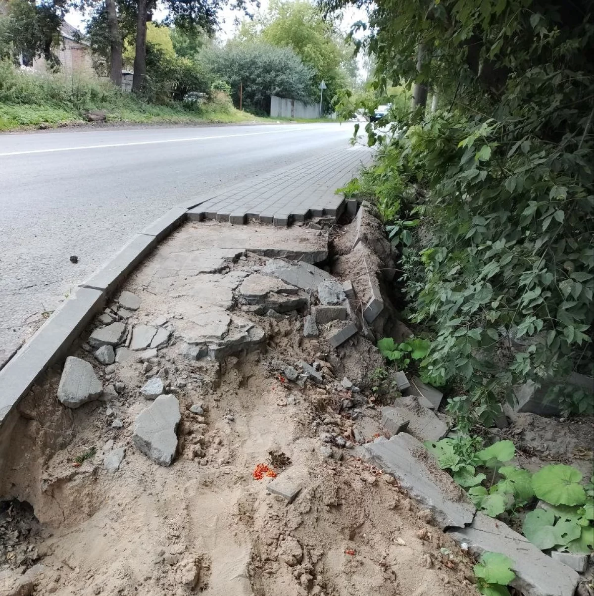 Ранее мы писали, что в Калуге городские власти полгода разбираются в причинах разрушения тротуара, более шести месяцев люди вынуждены выходить на проезжую часть прямо перед крутым поворотом на перекрестке улиц Городенской и Ждамировской.