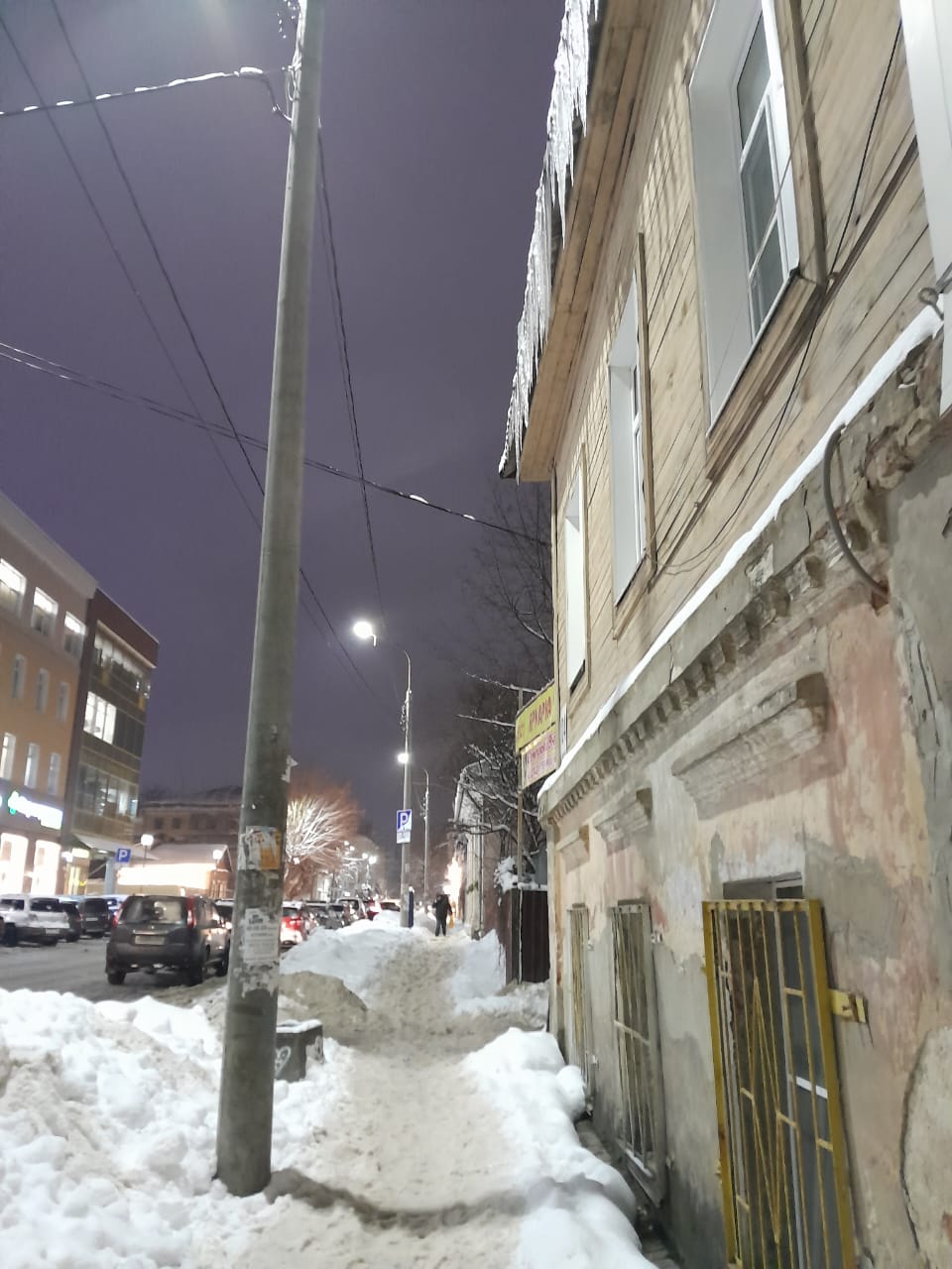 - Улица Суворова, напротив ТЦ Семейный. Смотрю под ноги, как бы не упасть в этой снежной каше, а над головой вот что творится! - сообщает жительница Калуги. - Передвигаться по городу очень трудно. Поднимите, что ли, зарплату дворникам, а то ни одного!