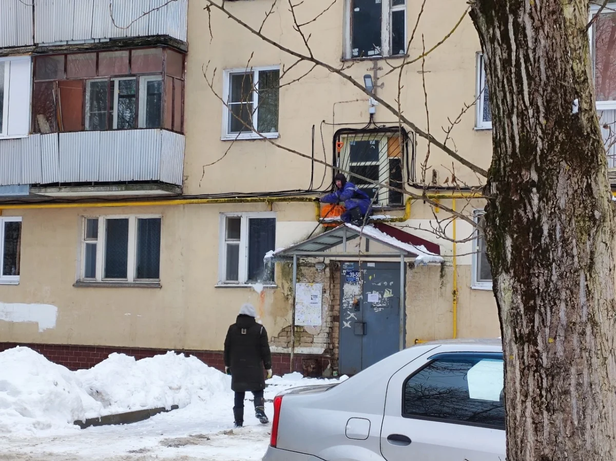 Позже жильцы сообщили, что в субботу, 3 февраля, рабочие сбивали сосульки по периметру дома, почистили козырьки у подъездов.