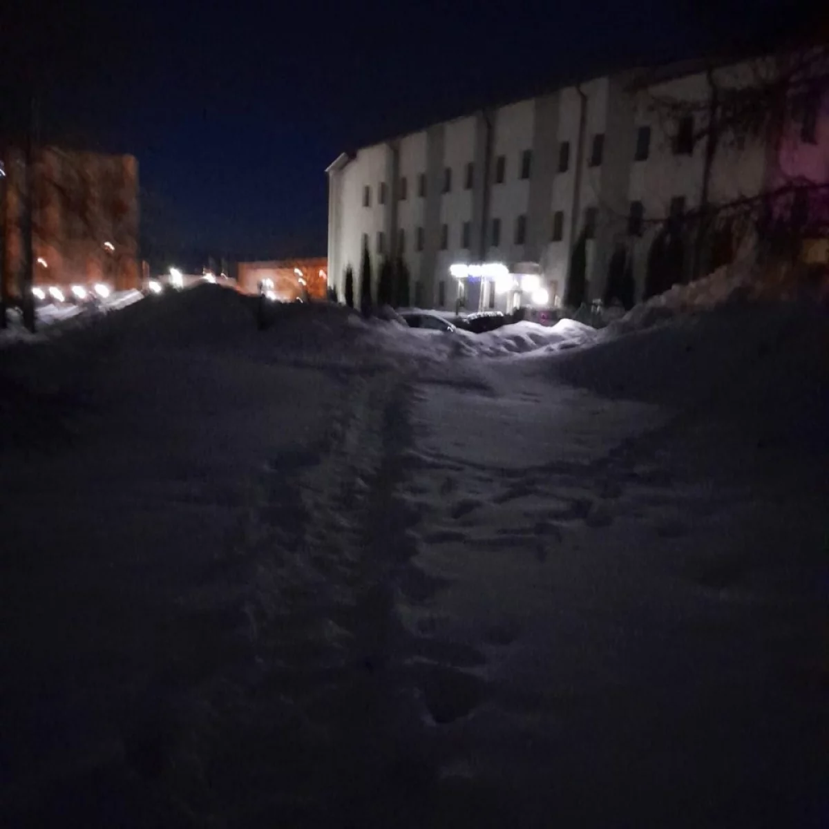 Путь от жилых домов в сторону остановки общественного транспорта.