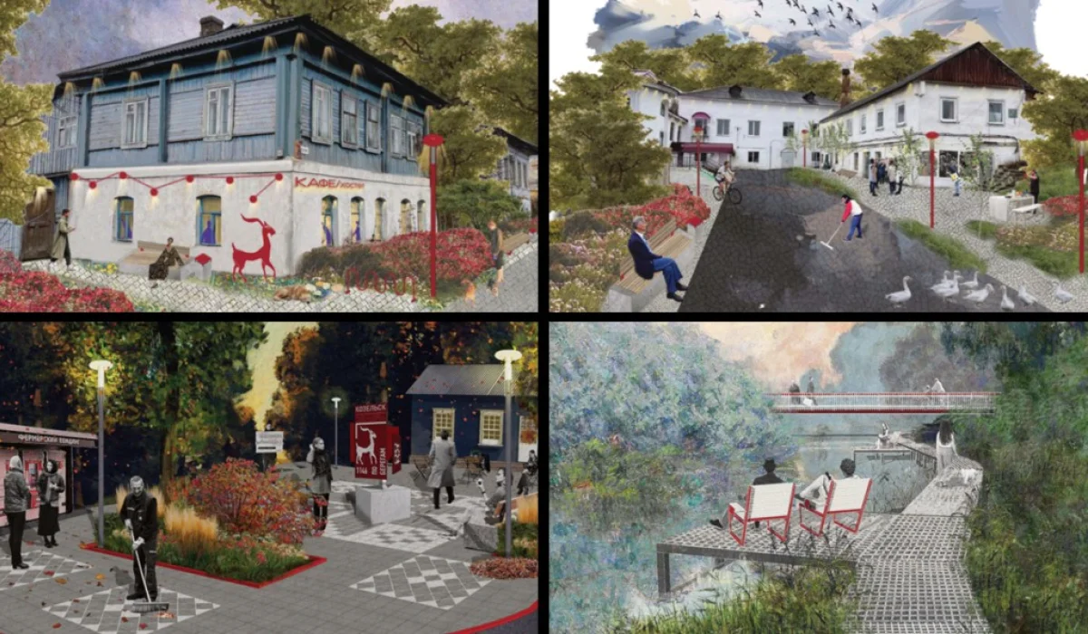 Другуска течет через центр Козельска и формирует зеленый каркас города. Вдоль реки расположены основные дороги и деловой центр. Основная цель проекта – связать части города пешеходной инфраструктурой.