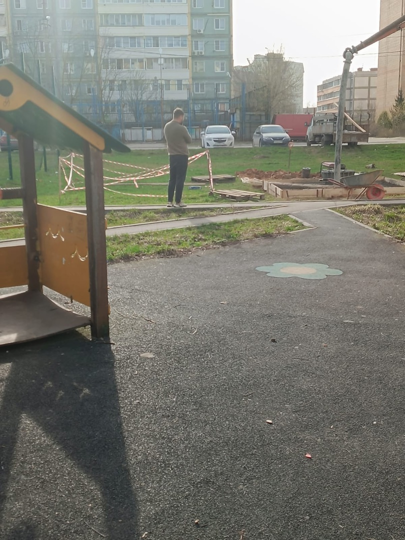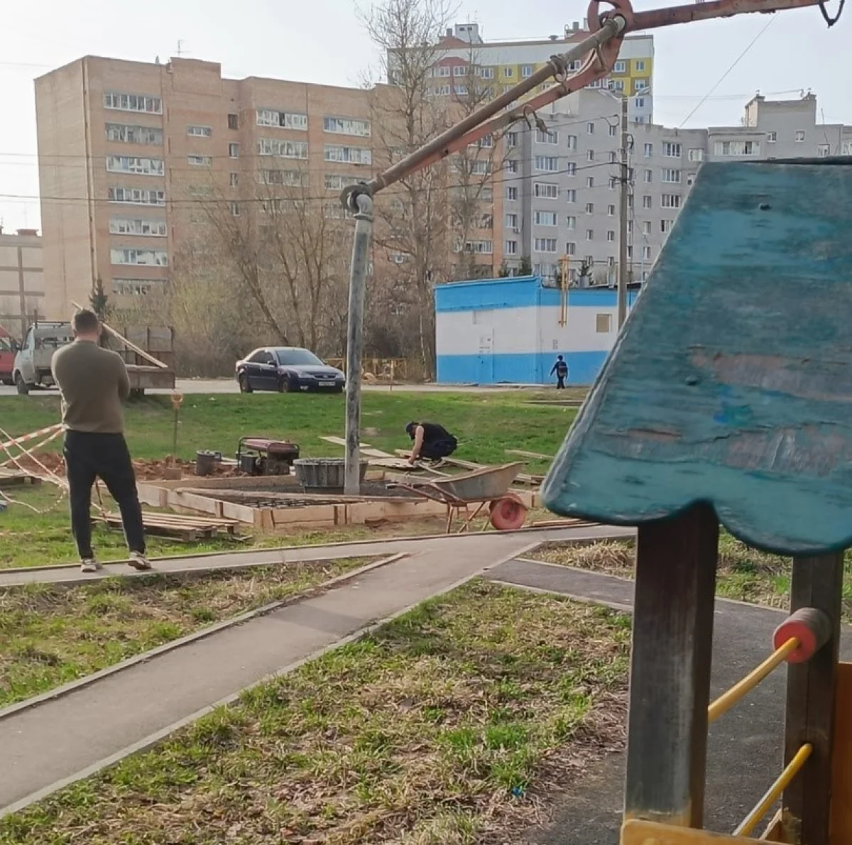 В редакцию обратилась калужанка и сообщила, что во дворе их дома рабочие заливают основание для вышки сотовой связи.