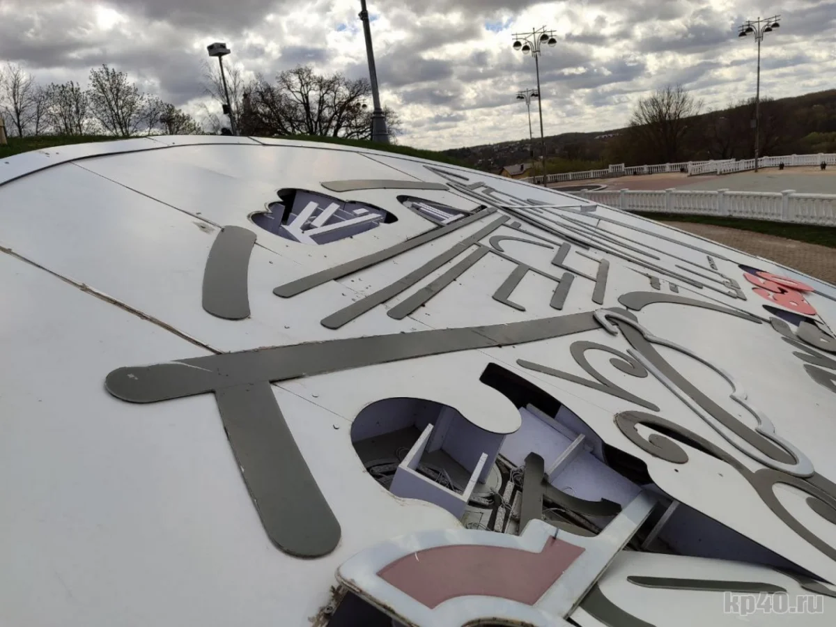 Во вторник, 16 апреля, в городской управе заявили, что логотип демонтируют, проведут ремонт, а потом вернут на месте.