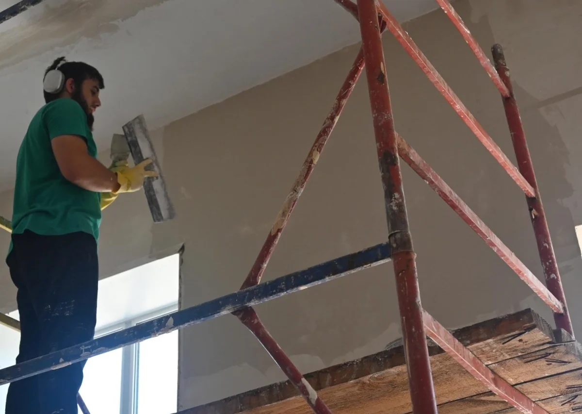 Уже завершено обновление фасада, приведен в порядок цоколь, залиты отмостки. Электрические сети также установлены строго по графику. Сейчас специалисты занялись отделкой внутренних помещений.