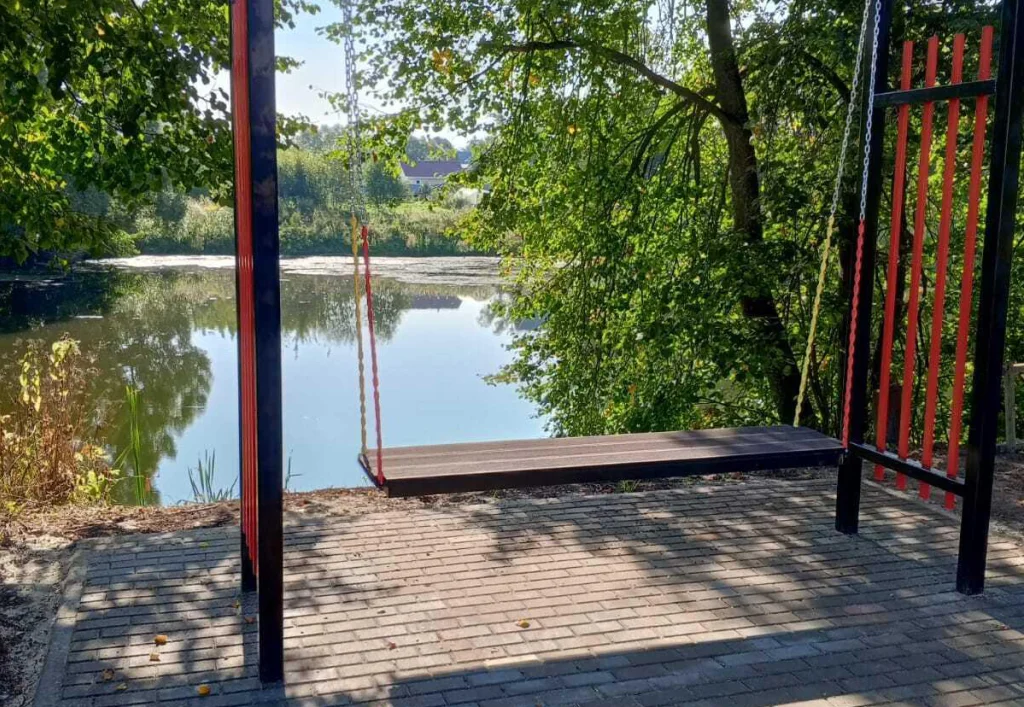 Рядом установлены качели.