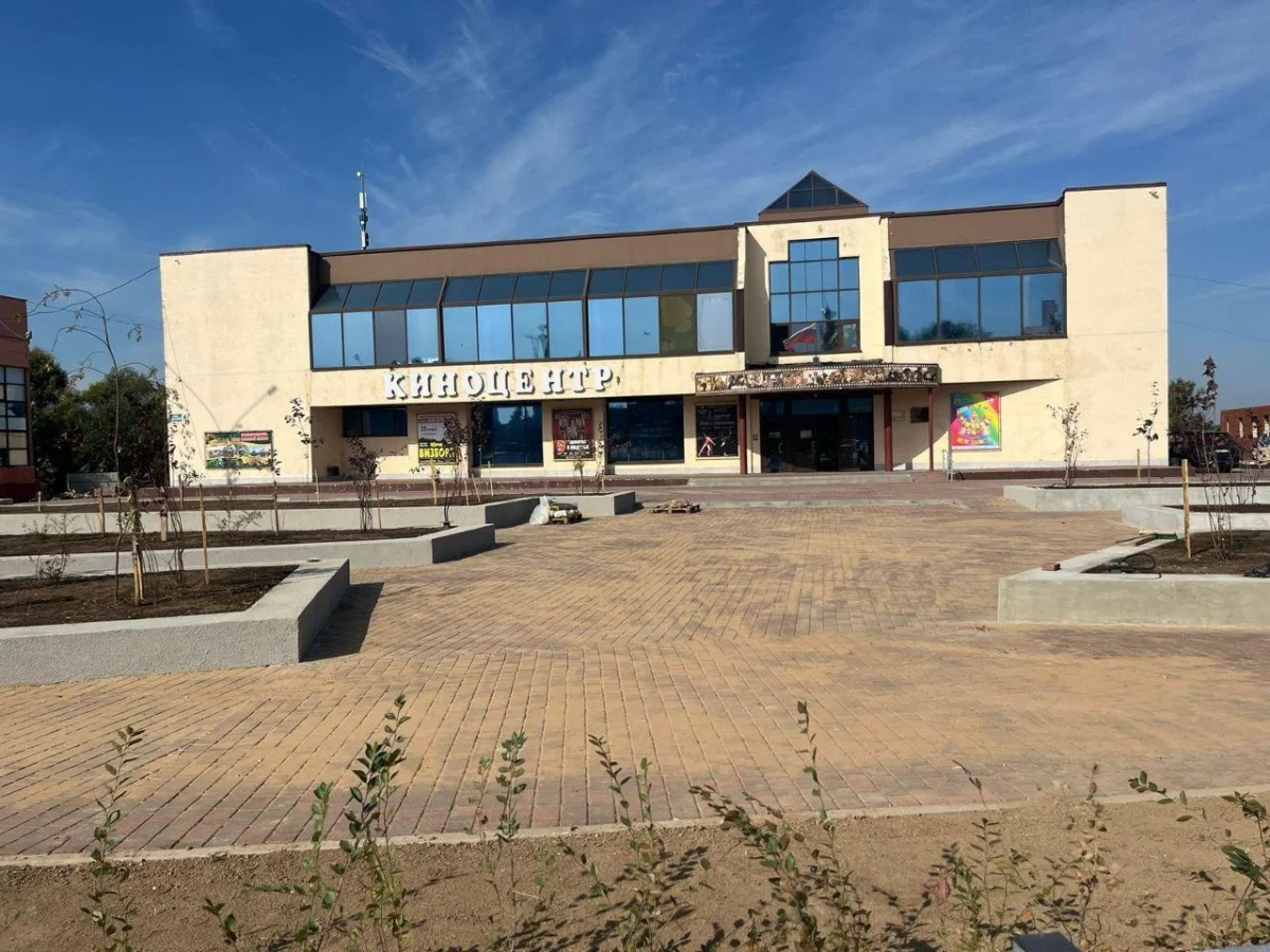 На территории у киноцентра, отделения банка и собора Казанской иконы Божьей матери положили плитку, сделали клумбы и высадили кустарники.