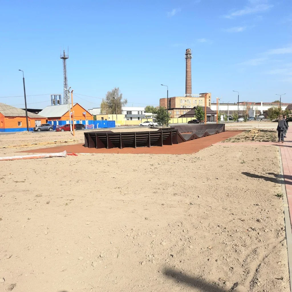 Подрядчик еще должен установить теневые навесы, парковые качели и обустроить велопарковку. На площади высадят клены и туи.