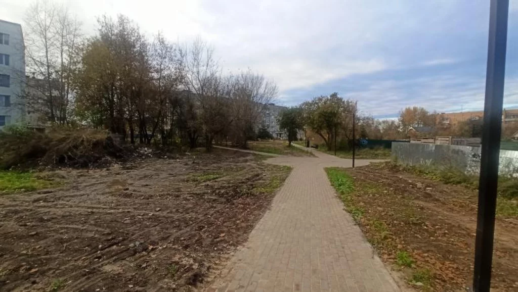 На пустыре появилась пешеходная дорожка, освещение, лавочки.